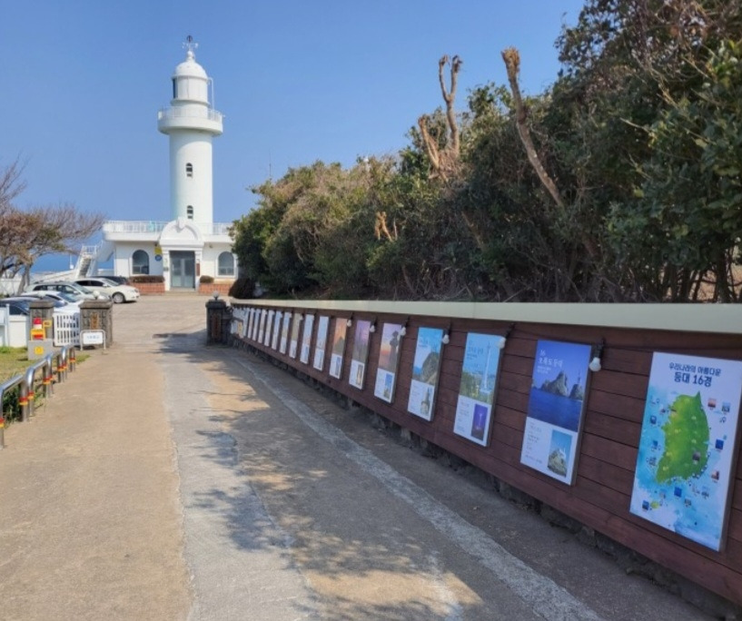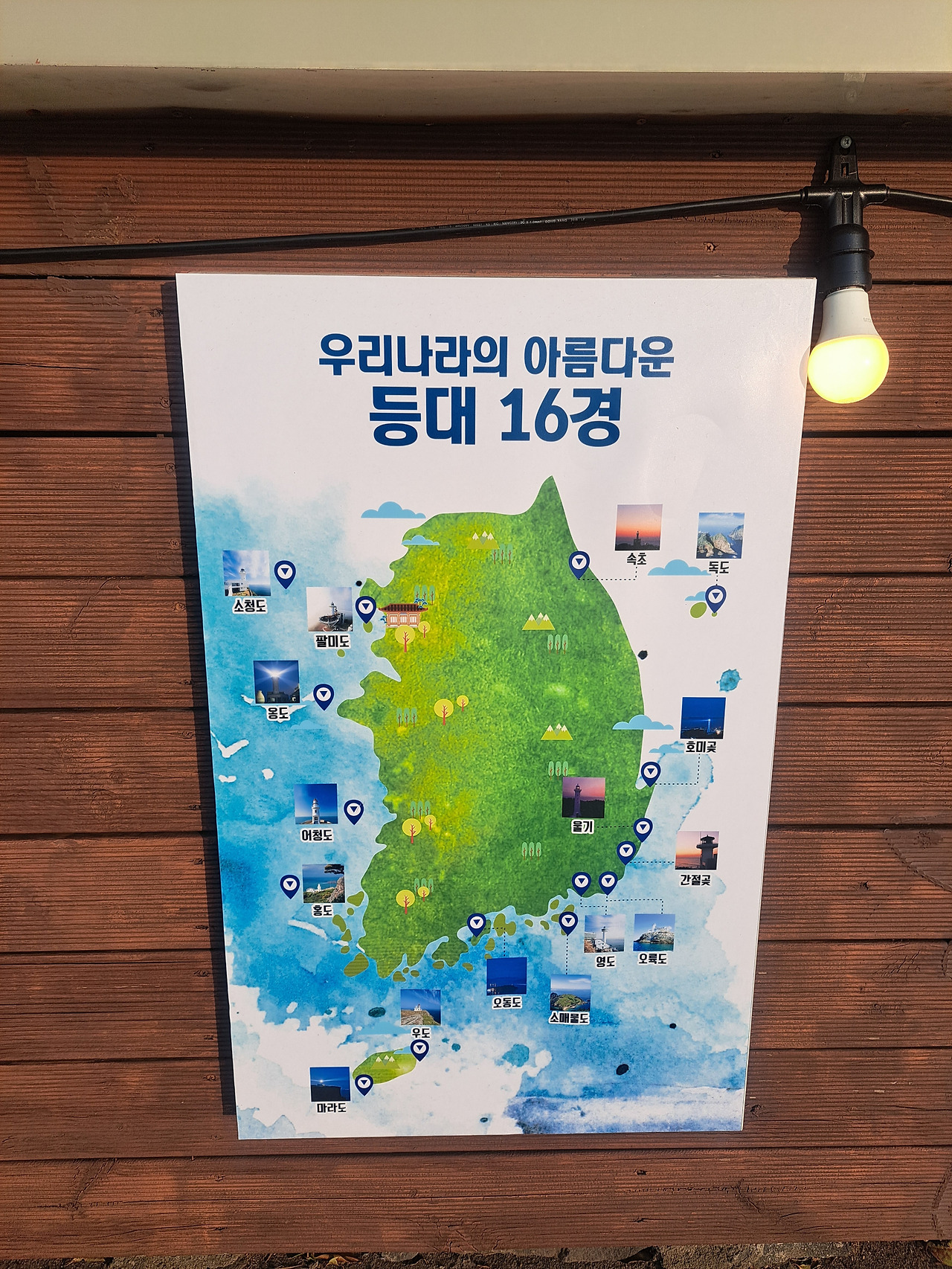 산지 등대로 들어가는 입구에는 ‘우리나라에서 아름다운 등대 16경’이 사진과 함께 전시되어 있다.