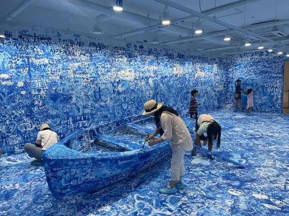 방문객을 위한 체험공간도 마련되어 있었다. 그림을 그리다 그만 수성물감이 옷에 묻어 곤란한 상황이 벌어지기도 했다. 집에 와서 빨았는데 완전히 지워지지는 않았다.