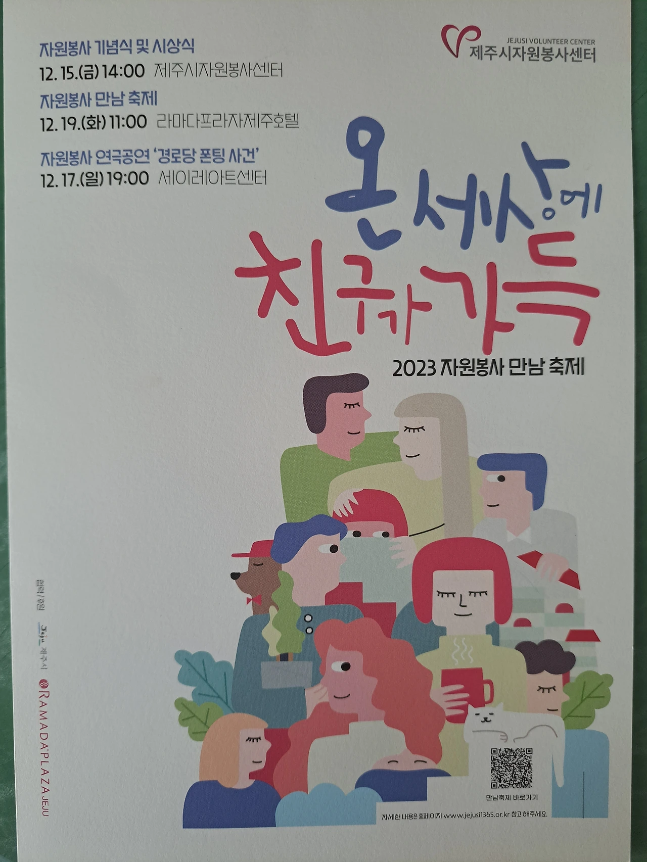 지난 12월 15일 제주시자원봉사센터에서 자원봉사자 및 단체, 자원봉사 활동기관 등 100여 명이 참여한 가운데 2023 자원봉사 만남축제를 개최했다.