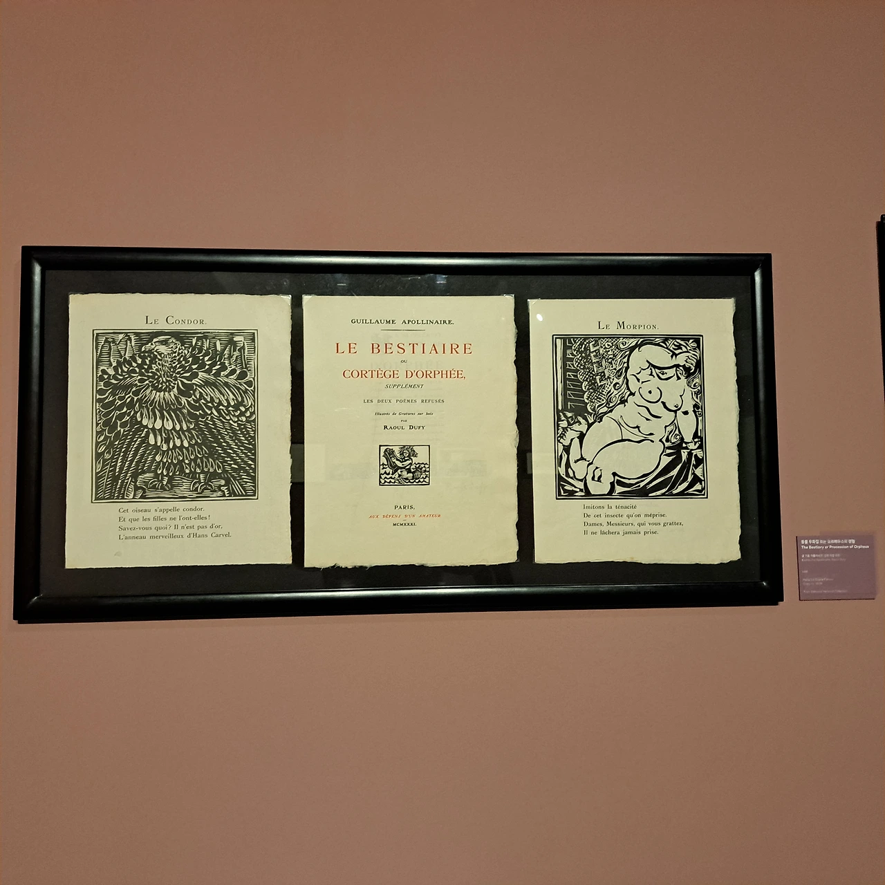 <동물시집 오르페우스 행렬>은 시인 아폴리네르와 판화가 라울 뒤피의 협력으로 1911년 3월에 발간되었다. 짧은 시 30편과 목판화 30점이 실려 있다.