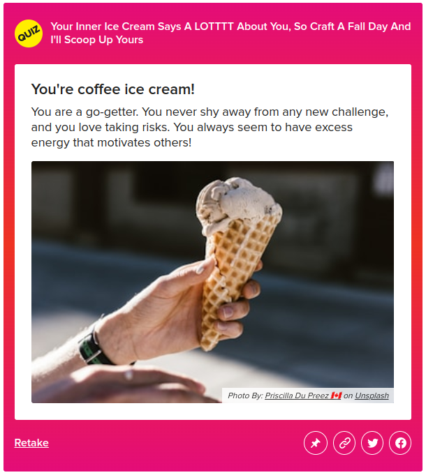 Ex) BuzzFeed의 성격 및 라이프스타일 퀴즈