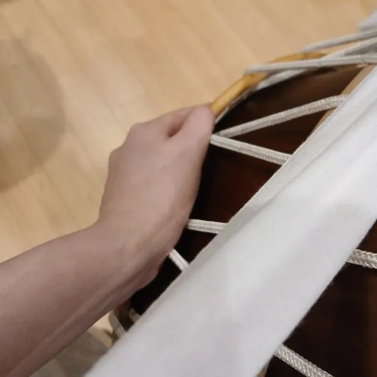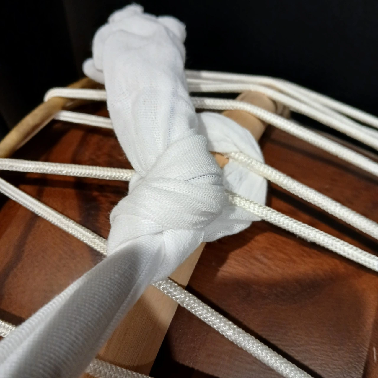 구멍 간격을 7개로 하고 묶는다. 청주농악 전문가분이 도와주셔서 한결 수월했다.