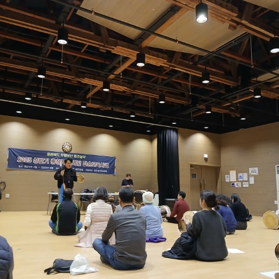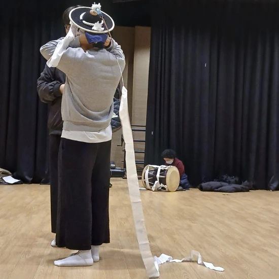 이제 서서 뭔가 해야 된다. 청주 농악은 제자리에 앉아서 하는 것이 아니라 서서 넓은 공간을 점유하며, 서로 호흡하는 게 특징이자 매력이다.
