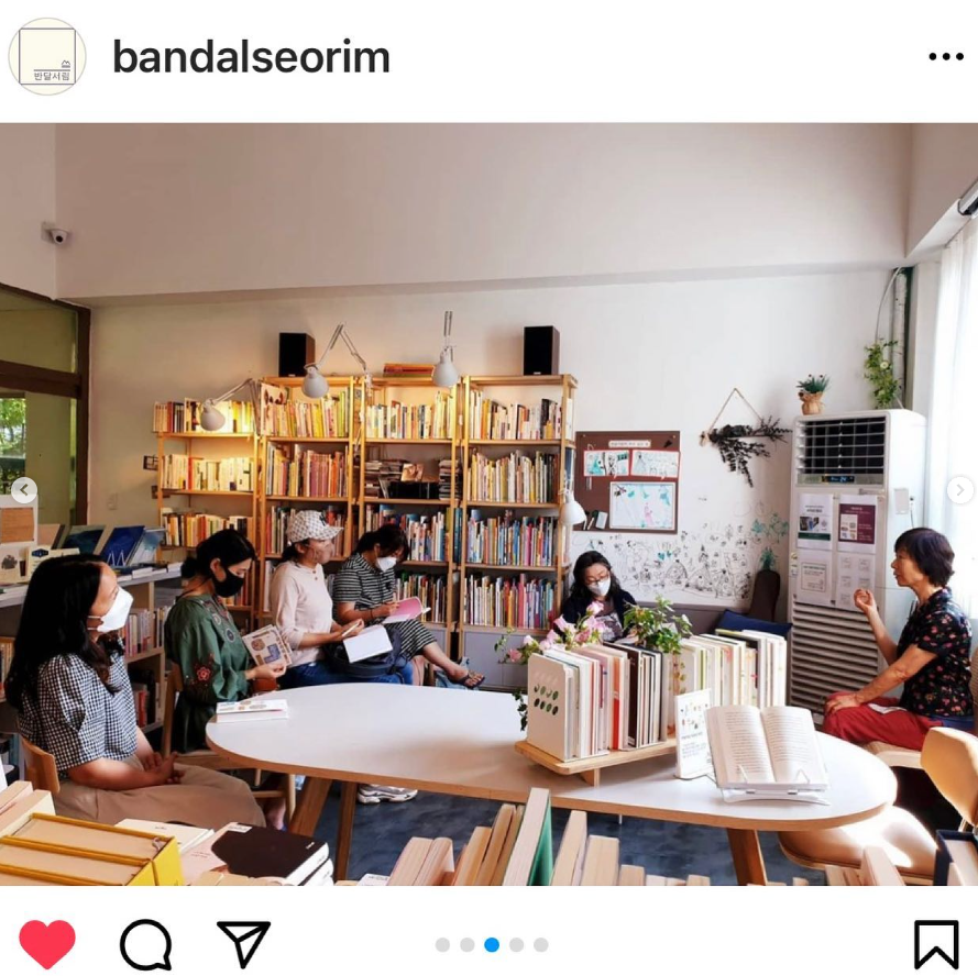 2021년 『막내의 뜰』로 전국의 동네책방을 다니며 북토크를 하신 강맑실 대표는 1년 후 사계절출판사 40주년이기도 한 2022년에, 자신이 북토크를 했던 23곳의 동네 책방 주인들에게 에세이 한 편씩 요청하여 받은 글을 엮어 『세상에서 가장 아름다운 곳, 동네책방』이라는 예쁜 책을 냈다. 강맑실 대표가 직접 색연필로 그린 각각의 책방 모습과 책방 사진이 책방지기들의 글과 어우러져 있는데, 한 편 한 편 책방지기들이 책방을 운영하는 마음과 애정이 느껴져 가슴 따뜻했다. 책 중간 즈음 반달서림 책방지기의 글이 있어 몹시 반가웠고, 책 표지 그림으로 아늑한 반달서림 모습을 만나 감격스러웠다. 모쪼록 반달서림을 비롯하여 『세상에서 가장 아름다운 곳, 동네책방』의 동네책방들이 꾸준히 지속해 나가길 바라본다.