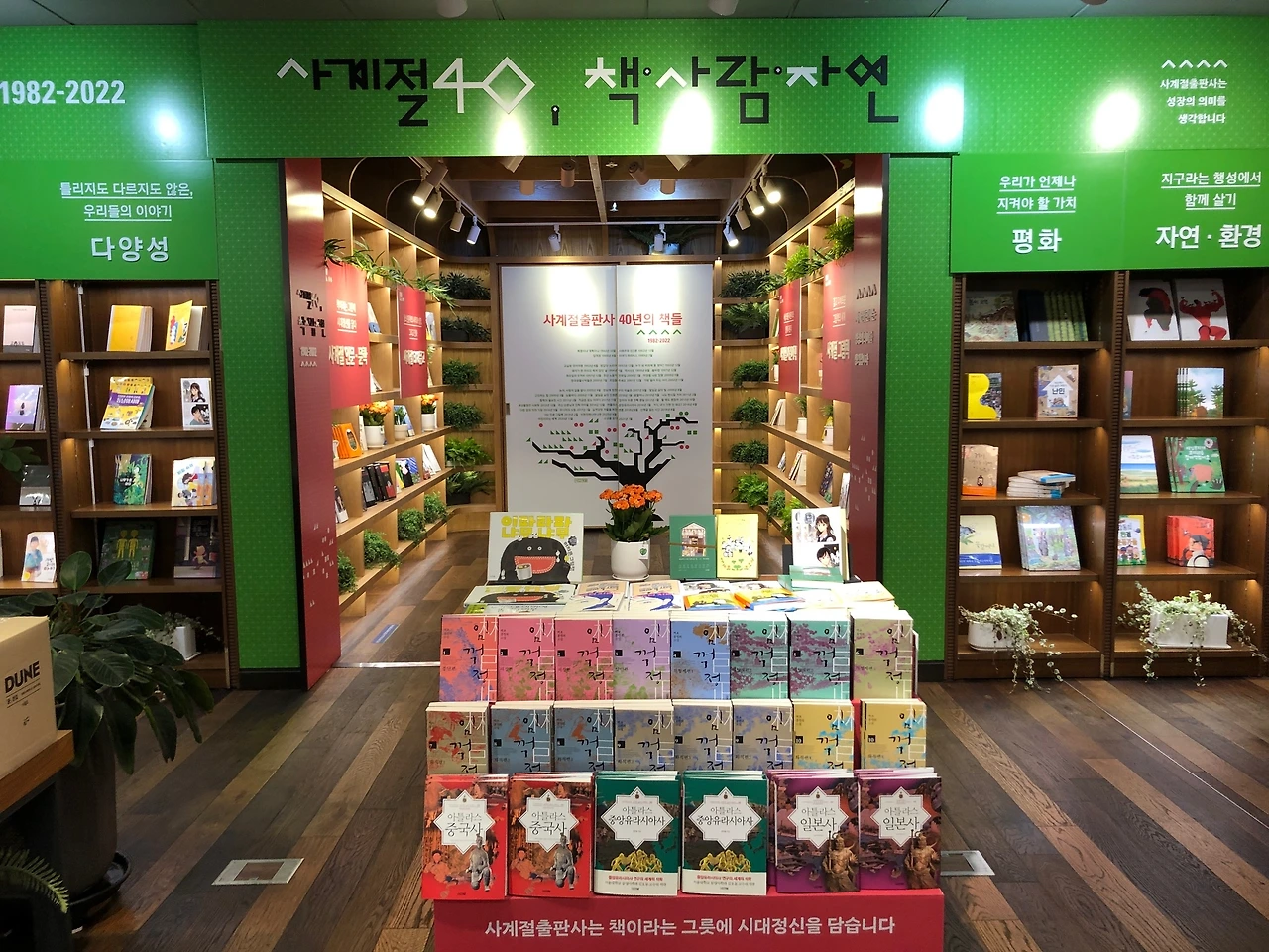 2022년은 사계절출판사 40주년. 파주출판단지에서 열린 사계절출판사 40주년 기념 전시회는 사정이 여의치 않아 볼 수 없어 아쉬웠는데, 우연히 교보문고에 들렀다가 그곳에서 사계절출판사 40주년 기념 전시회가 있는 것을 보았다. 반가운 마음에 찬찬히 큐레이션 된 책들을 살펴보니, 40세가 된 어느 한 사람의 삶을 보는 듯했다. 잘 자라왔고 잘 익어가고 있구나….. 모쪼록 사계절출판사가 오래도록 지속하여 노년의 삶까지 보여주며 기념할 수 있는 출판사가 되길 기원한다.