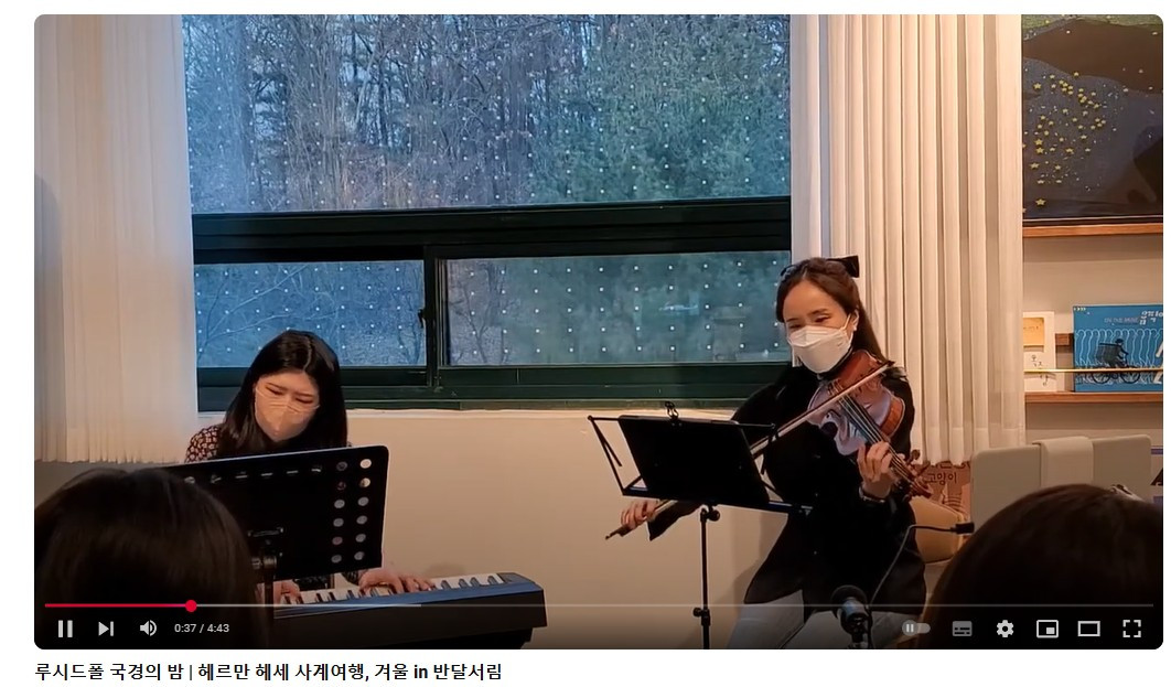 2021년 11월 13일에 있었던, 제4회 반달음악회 「헤르만 헤세의 사계 여행 – 가을」 은 아쉽게도 김장이라는 복병을 만나 참석할 수 없었다. 김장날짜와 음악회 날짜가 겹칠 줄이야...... 그렇게 헤르만 헤세의 사계 중 가을을 보내고 반년만에 제5회 반달음악회에 참석하여 「헤르만 헤세의 사계 여행 – 겨울」을 듣는 시간을 가졌다.