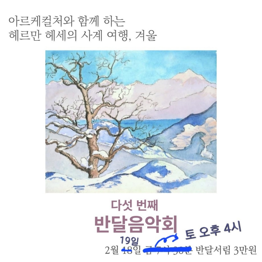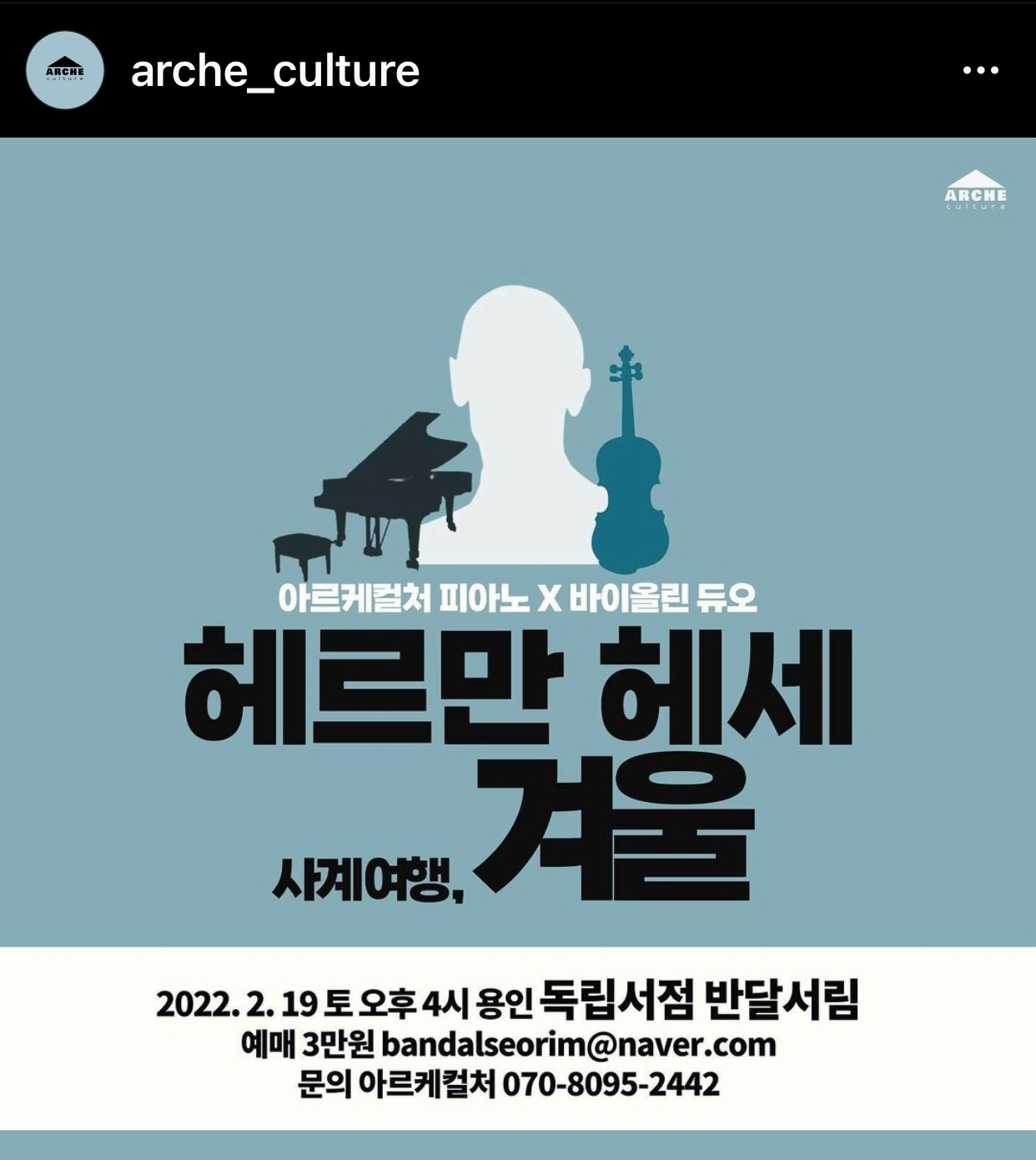 * 제5회 반달음악회 아르케컬처 「헤르만 헤세의 사계 여행 - 겨울」: 2022년 2월 9일 (토요일)