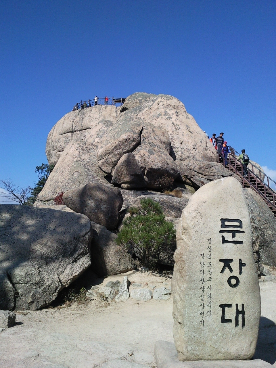 처럼 좀처럼 속도를 내서 오를 수 없었다. 다른 사람들은 빠릿빠릿하게 잘도 올라가는데 어쩌다 보니 나는 점점 뒤처져, 함께 오르는 두세 명을 제외하고 내 뒤를 따르는 사람이 없었다. 그냥 내려갈까 싶었지만, 올랐던 길로 내려오는 것이 아니라 봉우리인 문장대를 지나 반대편 법주사를 들러 하산하는 코스이며 타고 돌아갈 버스들도 다 그쪽에 있다 하니 어쩔 수 없이 끝까지 산을 오를 수밖에 없는 상황이었다.