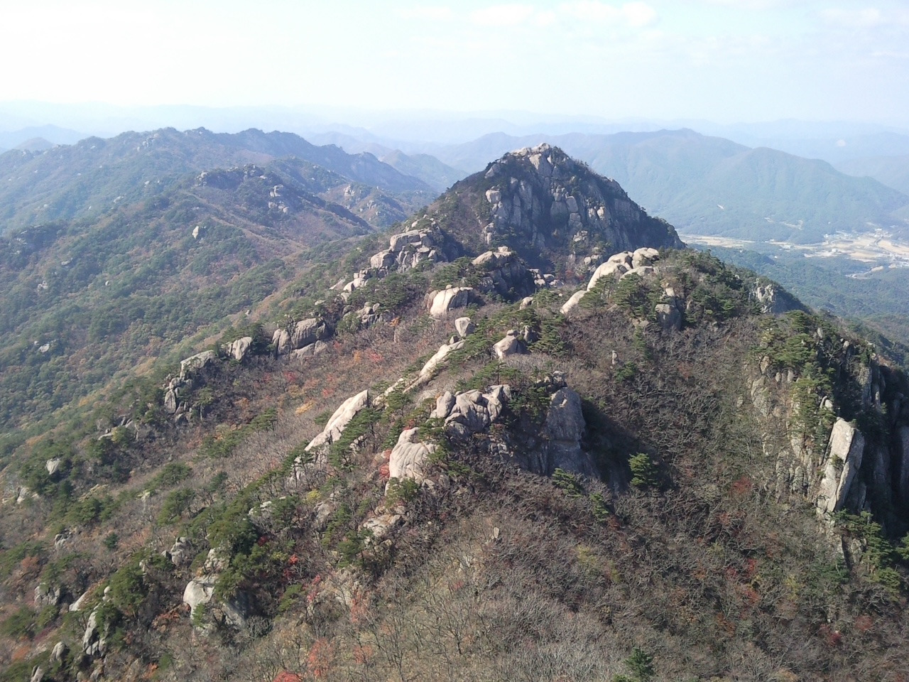 그리고 힘을 내어 속리산을 부지런히 오르던 중 부장님이 해 주셨던 말씀에 또 한 번 놀랐다. 그로부터 몇 해 전 봄, 창립기념일에 지인과 둘이 나름대로 멀리 지리산 여행을 2박 3일로 다녀온 적이 있었다. 여정 중 지리산 쪽에 숙소를 정하고 근처에서 저녁 식사를 했었는데, 그때 그 식당 이름을 말씀하시면서 거기에서 나를 보셨다고 말씀하시는 것이 아닌가? 나는 그때 부장님을 뵙지 못했기에 정말 깜짝 놀랐고, 왜 아는 척하지 않으셨냐고 하니 그땐 부장님께서 여러 모로 마음의 여유가 없으셨노라며 무안한 표정으로 살짝 미소를 지으셨다. 치료 후 회사에 복귀하신 그 시기가 부장님께는 힘든 시기였음을 알 수 있었던 순간. 정말 신기하다며…… '우리나라가 좁긴 좁아요'라며 호들갑을 떨고 대화하면서 부장님과 함께 덜 힘들게 문장대에 이르렀다. 문장대에 오르니 발아래 펼쳐진 속리산의 모습이 삶 그 차체였다. 평탄하지만 힘겨운 오르막길. 군데군데 돌덩이들이 줄지어 박혀 있는 속리산 같은 인생.