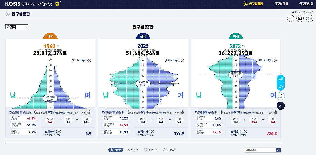 8. KOSIS 인구로 보는 대한민국 (https://kosis.kr/visual/populationKorea/PopulationDashBoardMain.do)