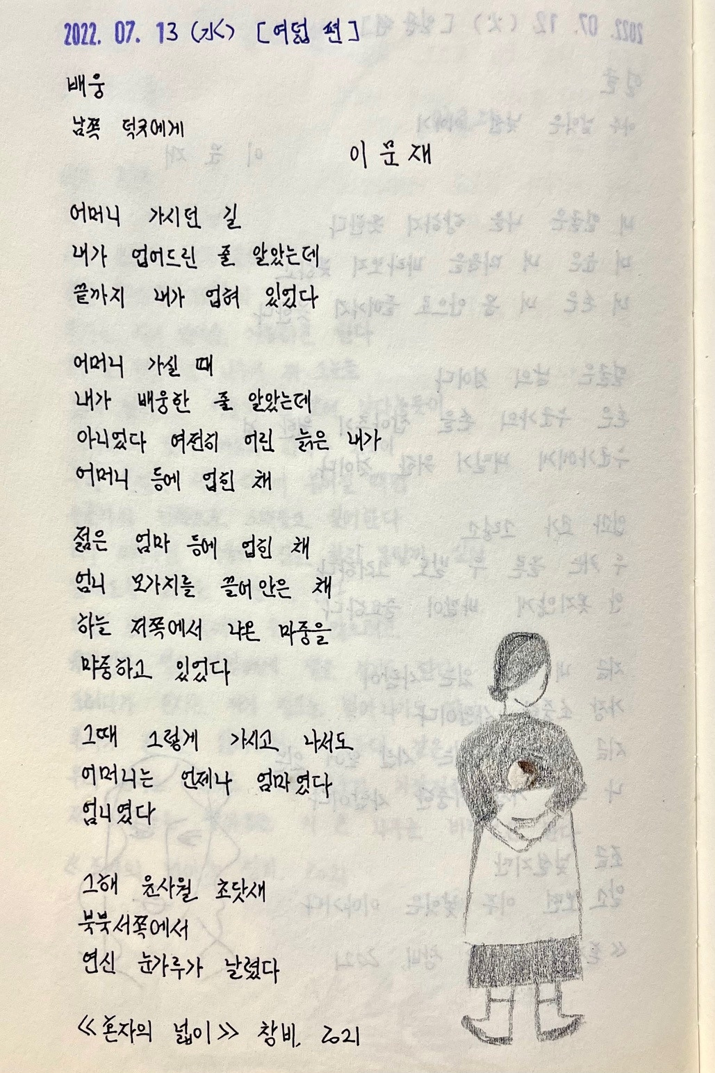 12. 반달서림의 시필사 모임에서의 시낭독 안내문 (https://cafe.naver.com/bandalseorim/5598)