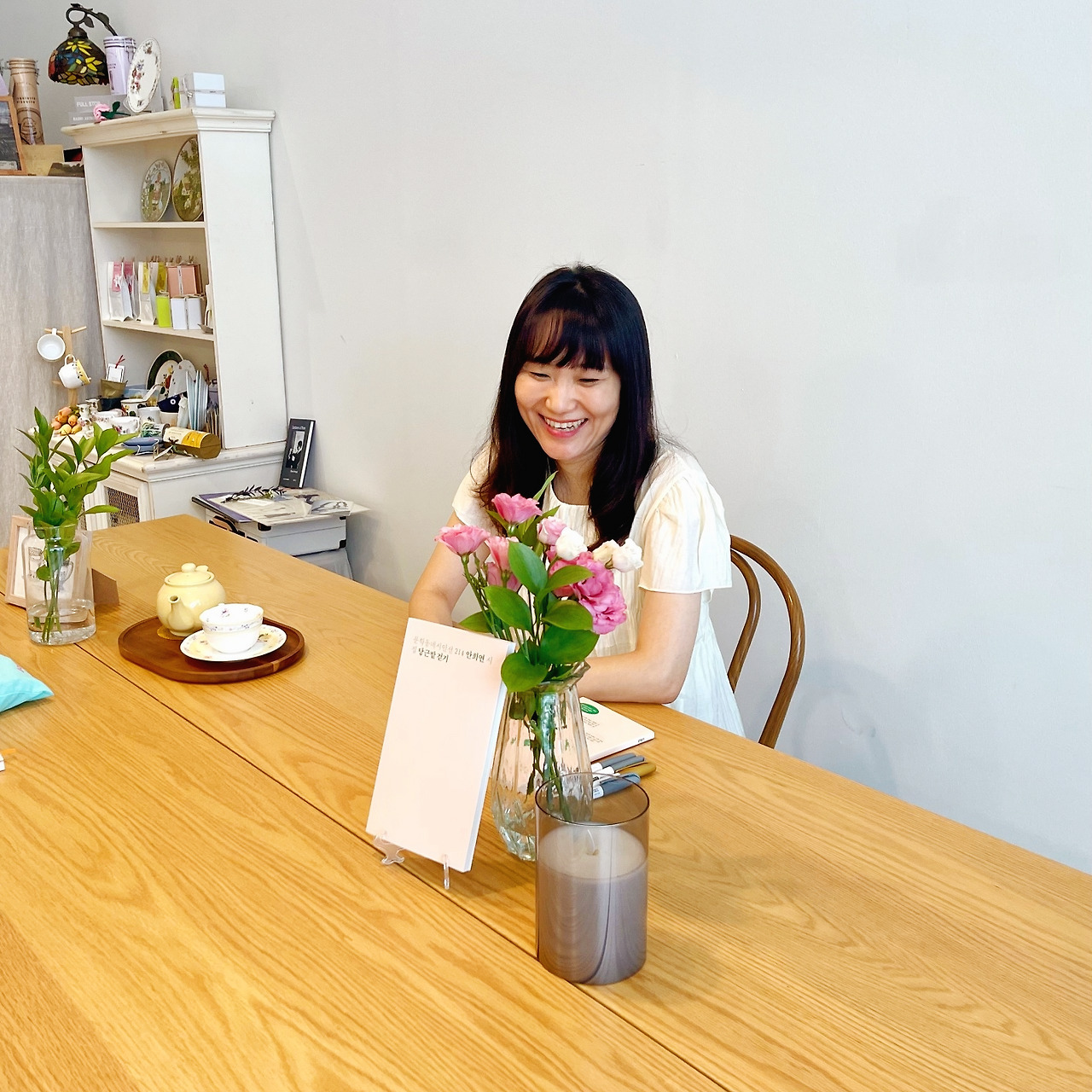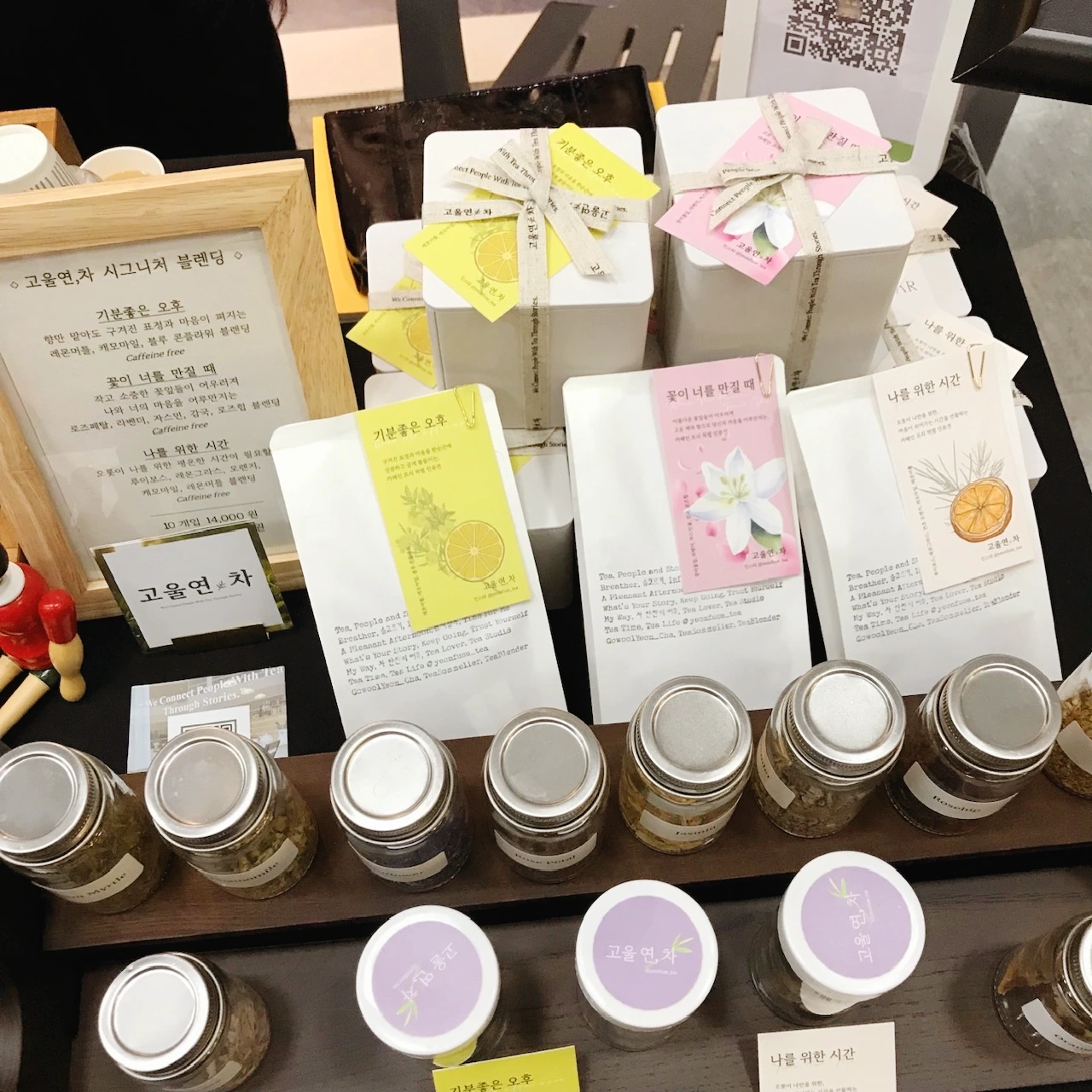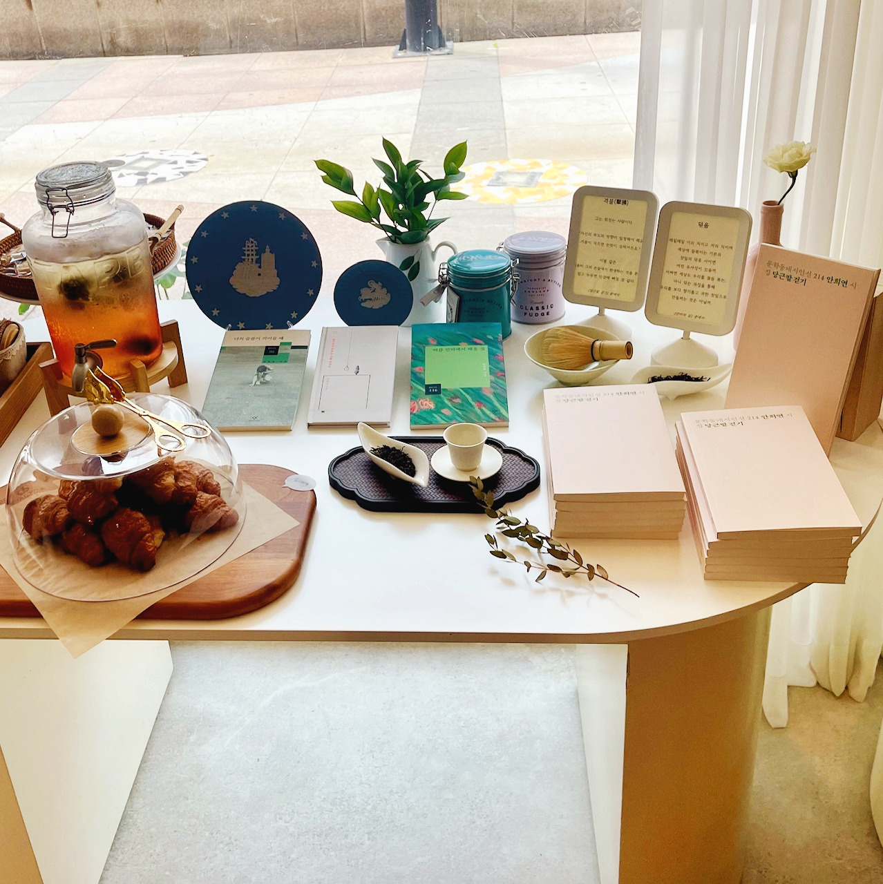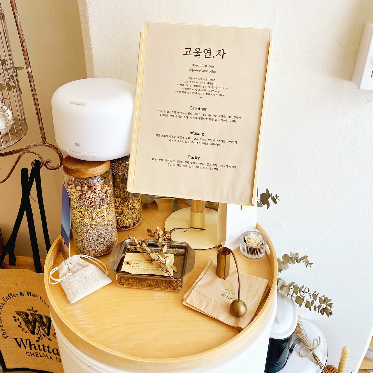 시낭독회 당일, 이전 두 번 행사 경험으로 안희연 시인이 일찍 도착할 것을 예상해 나 또한 일찍 ‘고울연,차’에 도착했다. 처음 방문한 ‘고울연,차’는 역시 일반적인 카페와는 다른 모습이었다. 중앙에 큰 테이블이 하나 있고, 평행하게 바형태의 테이블이 위치하였으며 바테이블 뒤에는 대표님의 공간이 있었다. 그 밖에 구석구석 예쁜 찻잔이 위치한 공간, 책이 위치한 공간, 직접 블렌딩 한 선물용 차가 있는 공간이 있어서 꼼꼼히 살펴보는 재미를 주는 ‘고울연,차’ 였다