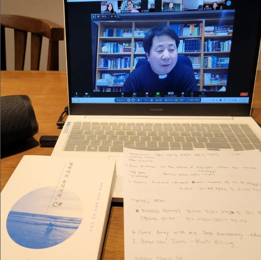 드디어 최대환 신부님의 온라인 북토크날이 되었다. 늦은 밤 최대환 신부님의 차분한 책 이야기는 울림으로 다가왔다. 그중 몇몇 기억에 남는 이야기는 ‘음악이 완벽해야 하는 것은 아니라는 것. 서툴러도 즐기면서 음악을 듣는다는 것은 여유를 갖는다는 것.’이라는 이야기였다. 좀처럼 늘지 않는 우쿨렐레 실력이지만 그래도 충분히 즐기고 있는 나를 응원하는 말처럼 느껴졌다. 그 밖에도 클래식은 대화가 있는 음악이고 감정을 단련시켜 주는 측면이 있다고 하셨는데, 그땐 긴가민가 했던 것이 2년이 지난 지금은 그래도 그동안 음악을 접한 시간이 있어 그런지 그 말을 이해할 수도 있을 것 같다. 또 신부님은 책을 읽을 때 책에 맞는 음악을 듣는 편이라고 말씀하셨는데, 신부님이 읽고 계신 책과 그 책에 맞는 음악 리스트를 공유받고 싶기도 하면서, 나도 내가 좋아하는 책은 그 책을 읽을 때 들으면 좋은 음악 리스트를 만들어 봐야겠다는 생각도 들었다.
