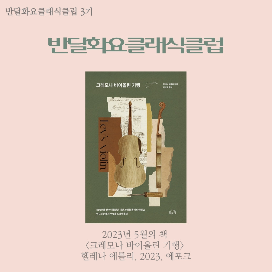 다음으로 이야기하고 싶은 책은 『크레모나 바이올린 기행 (Lev’s violin)』이다. 반달클래식클럽 3기에서 읽기 약 2달 전, 서울에 있는 최인아책방에서 이 책의 북토크가 열린다는 공지를 보았다. 특이하게도 책의 저자가 아닌, 바이올린 제작자와 바이올린 연주자의 대담 형식으로 이루어질 것이라고 했는데, 대담자로 출연하는 바이올린 연주자가 바로 우리 아르케컬처 대표님이 아닌가? 그리고 ‘레프의 바이올린’이라 이름 붙여진 어느 한 낡은 바이올린, 하지만 바이올린 명장이 크레모나에서 만든 것이라는 연주자의 발언에, 과연 레프의 바이올린이 크레모나 출신이 맞는지 그 기원을 추적하는 책 내용이 흥미로울 것 같아, 북토크를 신청했다.