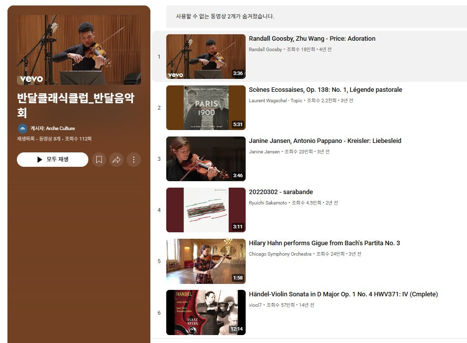 14. 아르케컬처 유튜브 채널 재생 목록 중 반달음악회 「반달클래식클럽」 (https://youtube.com/playlist?list=PL8UUJ1D1syiR3IlijzfU_yPrkLlMDtrMw&feature=shared)