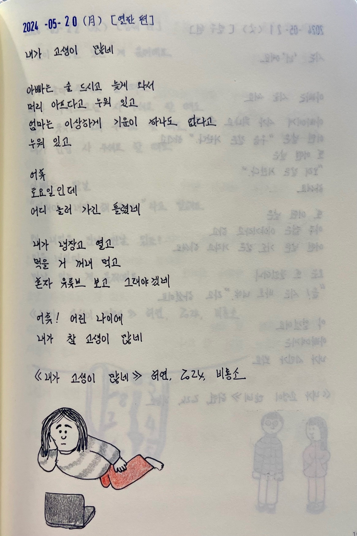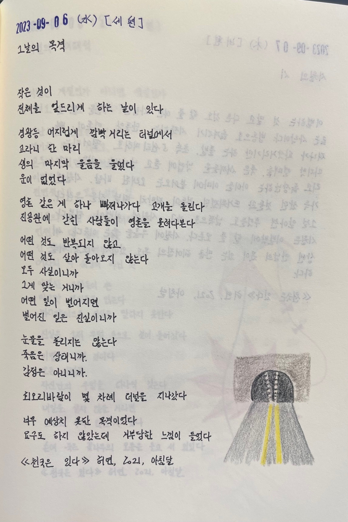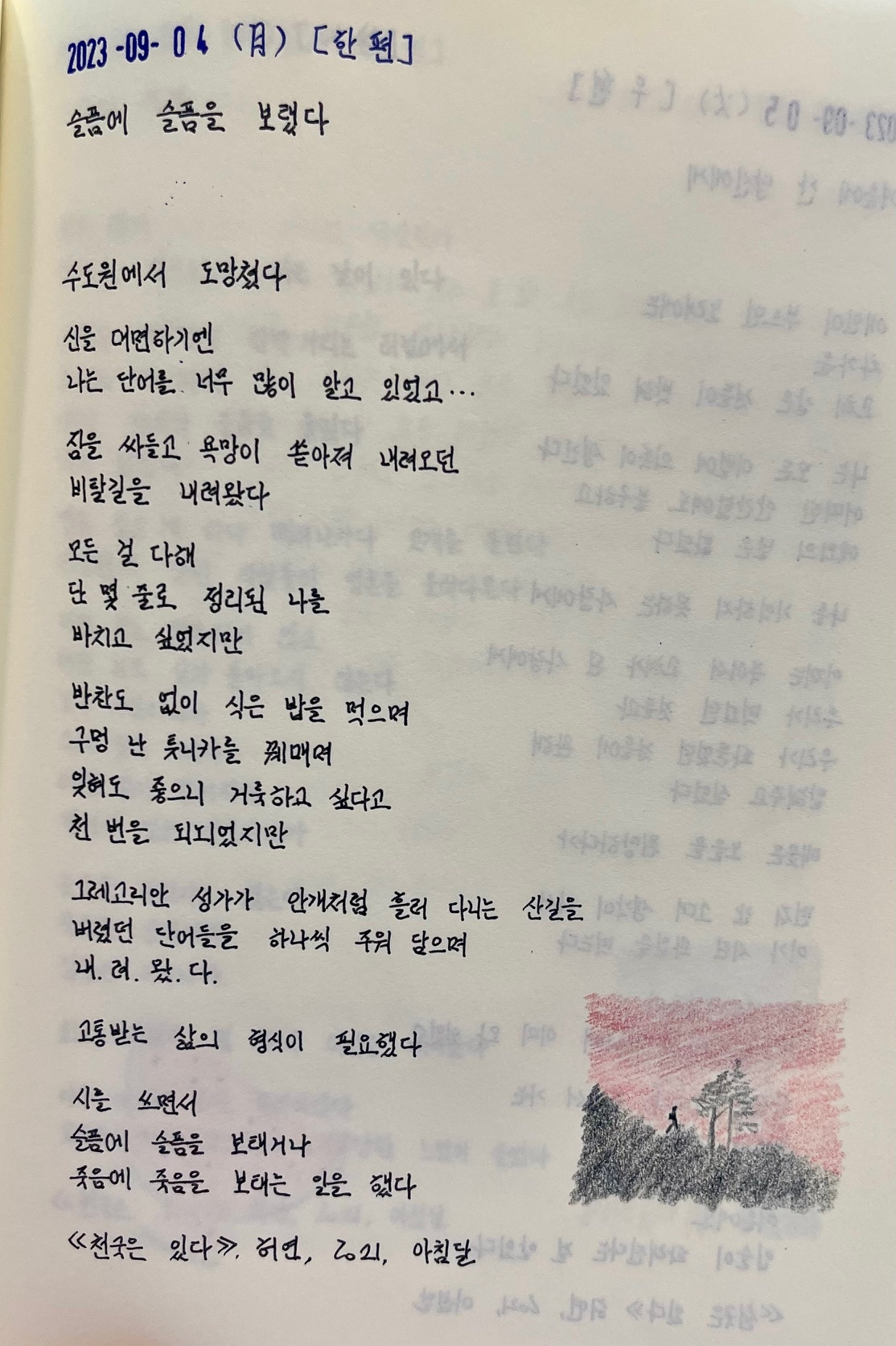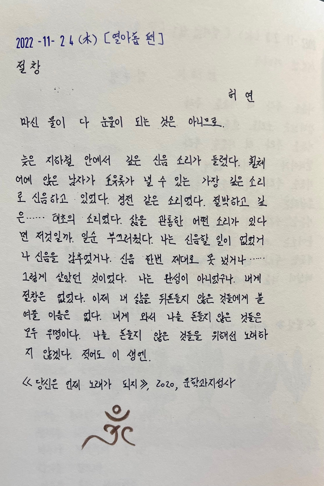 그래서 시 도입부에서 유추할 수 있는, 사랑하는 이가 떠났을 때가 「슬픈 버릇」 시가 되었다.