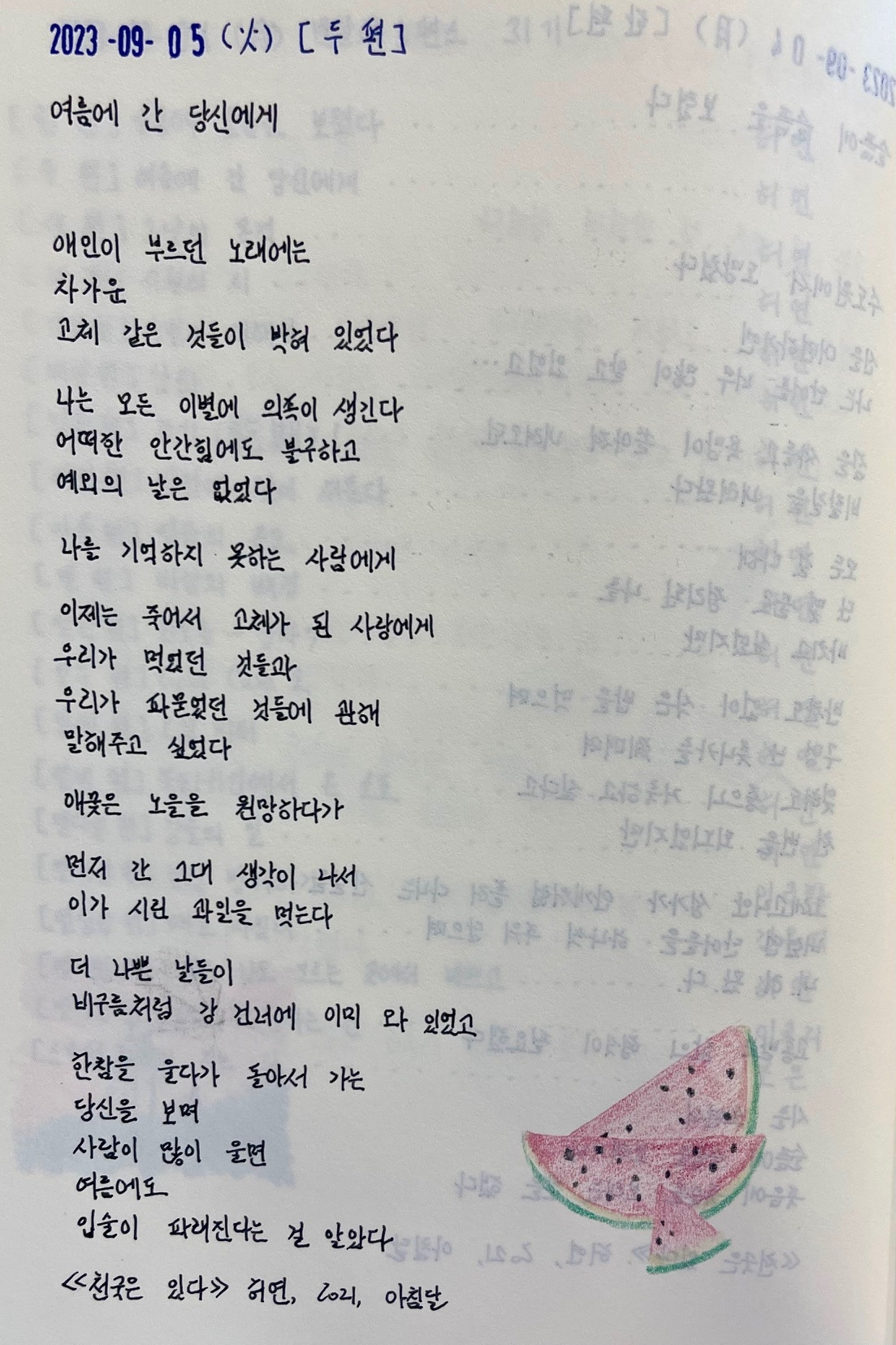 ‘가끔씩 그리워 심장에 손을 얹으면 그 심장은 이미 없지.