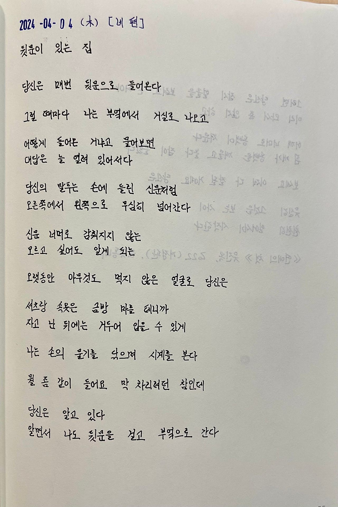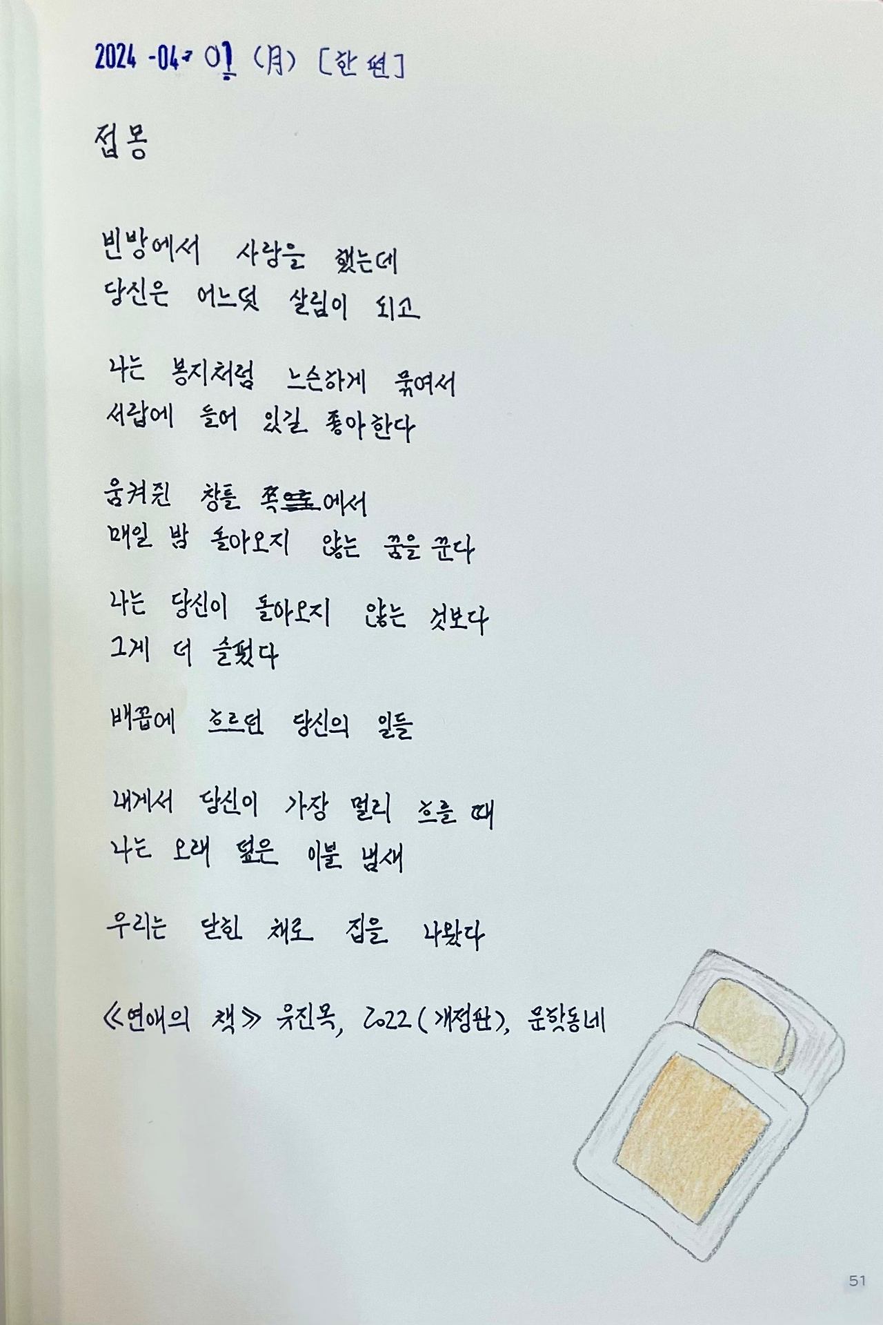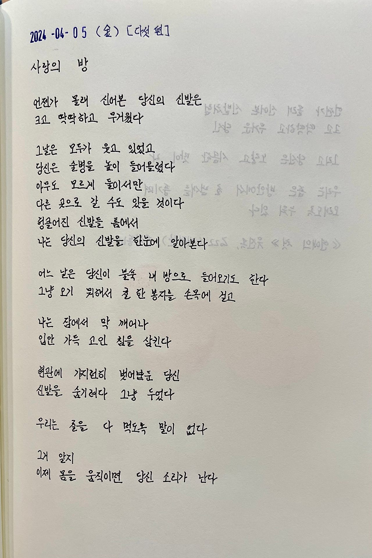 이야기를 들으며 나도 익숙함과 편안함을 기점으로 두고 조금씩 자유롭게 새로운 시도를 해봐야겠다는 다짐을 해본다. 이번 시낭독회에서 얻은 가장 큰 이득이다.