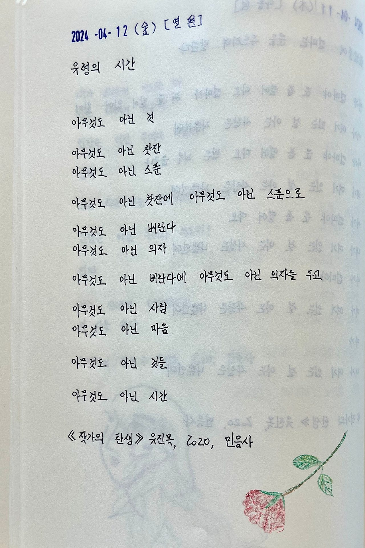 그랬는데, 2024년 4월 예정된 김탁환 작가님 북토크 진행 차 대표님이 한국에 방문하는 기간에 맞추어, 시낭독회도 열기로 했다는 것이 아닌가? 그 깜짝 시낭독회의 주인공은 유진목 시인이었다.