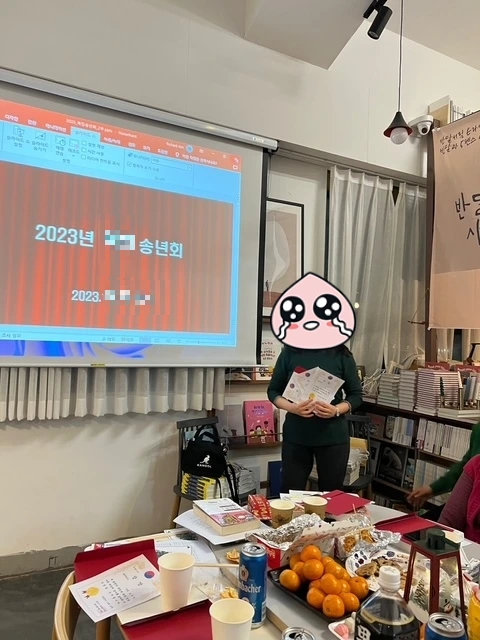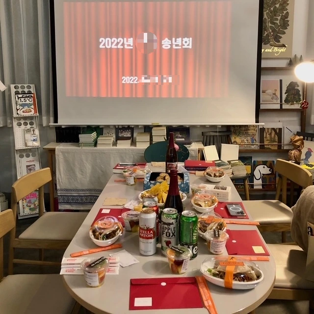 이런 느낌은 비단 나 혼자만 받는 것은 아니어서 2022년 처음 연말모임을 한 후 2023년에도 독서모임 회원들은 반달서림에서의 연말모임을 당연하게 여겼다. 다만 2024년에는 반달서림이 이사를 앞두고 있고, 독서모임 회원들도 늘어 공간이 협소한 감이 있어 동네의 또 다른 문화공간 ‘마녀의 뜰’을 이용하였지만, 2025년 연말모임은 새로운 반달서림 공간에서 갖지 않을까 싶다.