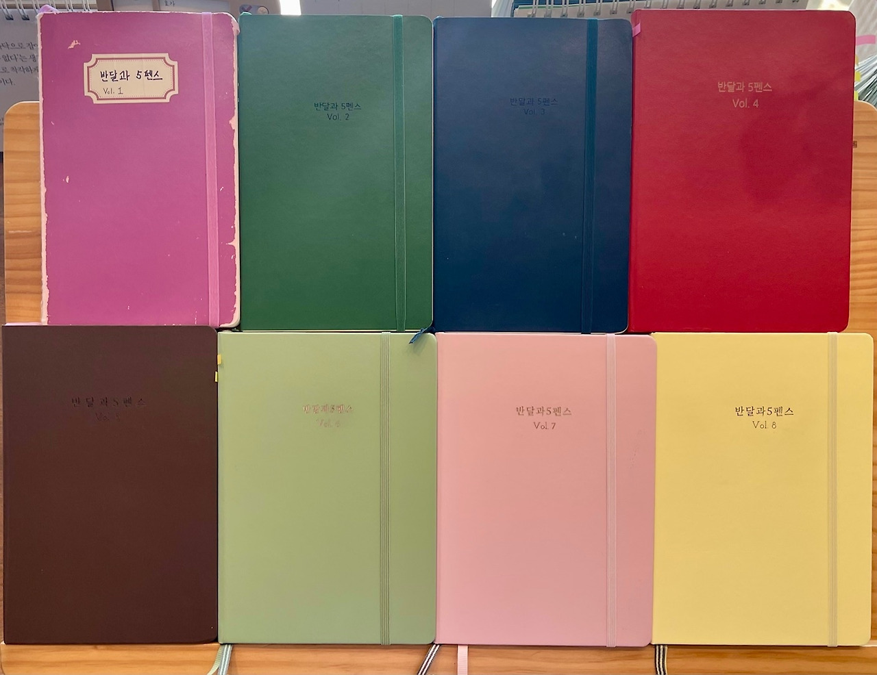 이름에서 보듯 “반달과 5펜스” 운영 방식은 이렇다. 참가비를 내고 모임에 참여하면, 매주 월요일부터 금요일까지 일주일에 다섯 번 한 펜을 들고 그날의 시를 필사한 후, 필사한 페이지를 사진 찍어 매일 “반달과 5펜스” 온라인 카페방에 올린다. 그렇게 한 달이 지나면 모임의 회원들과 스무 편의 시를 함께 필사하게 되는 셈이다.
