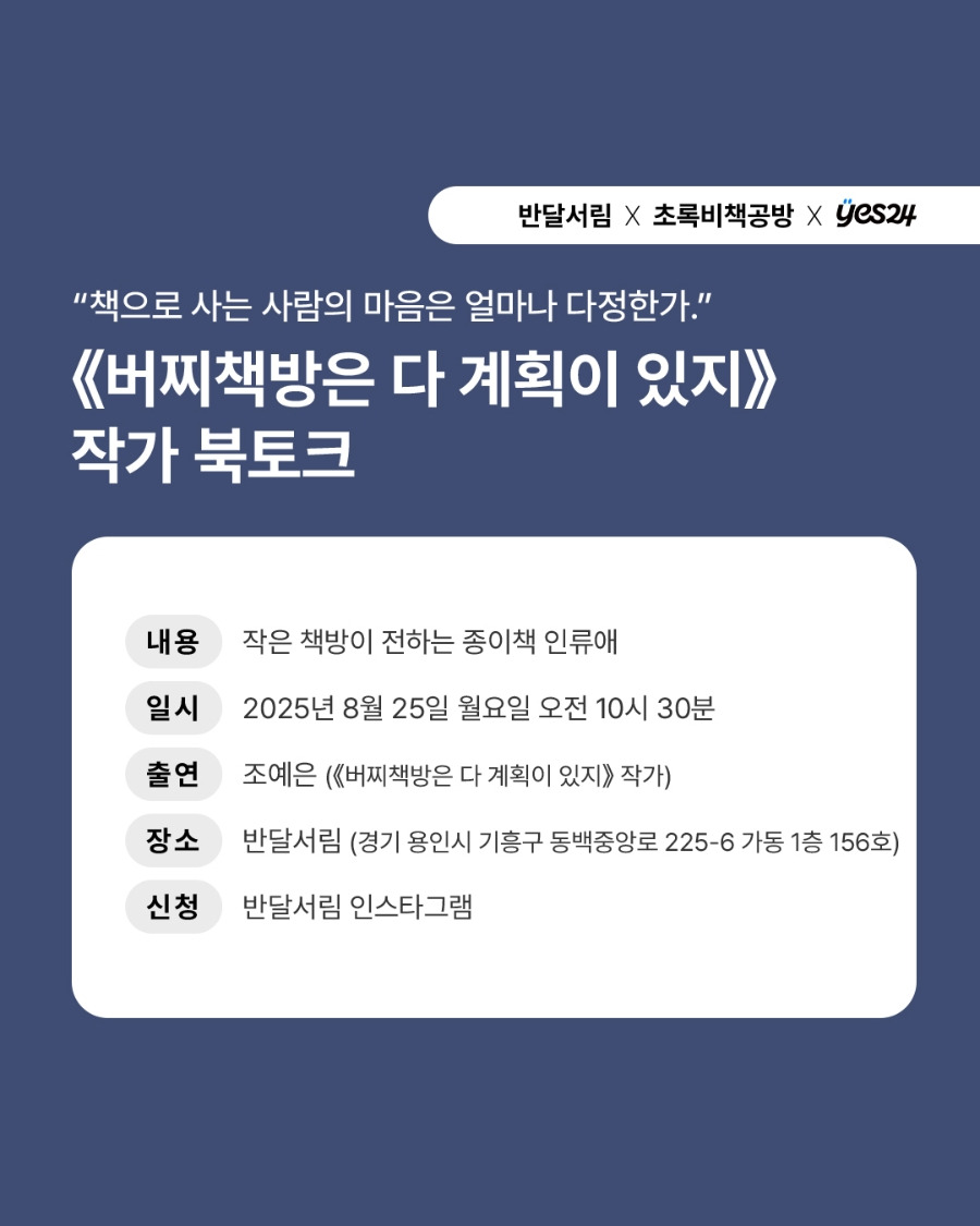 * 조예은 작가 『버찌책방은 다 계획이 있지』 : 2025년 8월 25일 (월요일)
