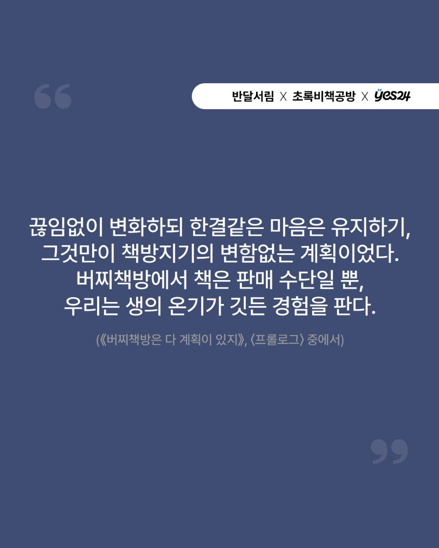 3. 반달서림 《버찌책방은 다 계획이 있지》 북토크 후 버찌책방지기 추천 도서 (https://blog.naver.com/bandalseorim/223983194252)
