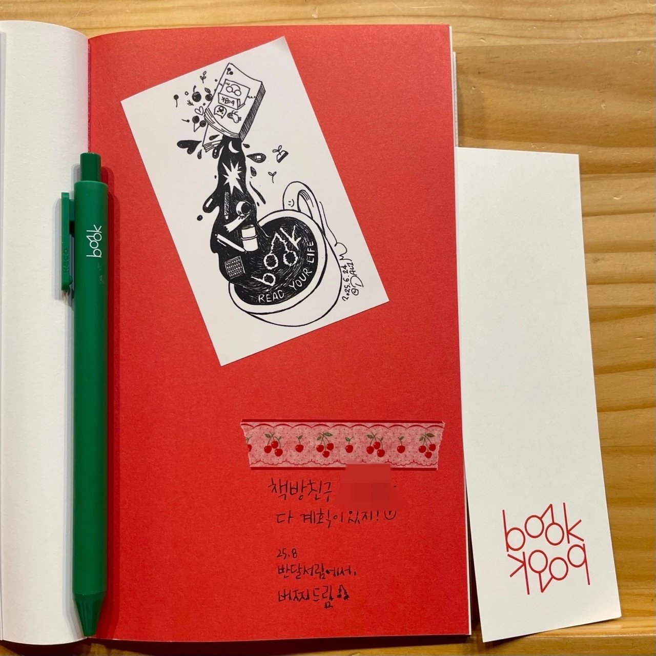 읽고 나서 다시 본 책 표지 제목, 붉은 실로 수놓은 듯한 제목이 예사로 보이지 않았다. 한 땀 한 땀의 바느질은 그 간의 마음고생과 노력, 어려움을 이겨낸 자취이자 앞으로도 쭉 걸어갈 길이었다. 그리고 책을 읽는 동안 머릿속에 그려진 버찌책방지기의 모습은 힘든 일을 겪어도 쉽게 좌절하지 않고 적극적으로 방법을 찾으며, 그 가운데 도움의 손길을 내밀어 준 사람들에게 진심으로 감사함을 표현하는, 사랑의 힘을 믿는 단단한 사람이었다. 책까지 나왔으니 이제야 말로 버찌책방을 방문해서 『버찌책방은 다 계획이 있지』 책을 구입해서 저자 서명도 받고 귀여운 버찌 스탬프도 받아야겠다고 생각했는데, 반달서림 대표님이 버찌책방지기의 북토크 날짜가 정해졌다는 공지를 올렸다. 날짜는 8월 25일 월요일 오전, 같은 날 저녁에는 빈칸놀이터에서도 동일한 북토크가 있을 예정이라는 소식도 함께 기재함으로써 훈훈한 책방 동지애를 보여주었다. 후에 북토크 때 반달서림과 빈칸놀이터 두 책방 중 어느 한 곳만 택해서 할 수는 없었다고 말하는 버찌책방지기의 마음도 훈훈했고……