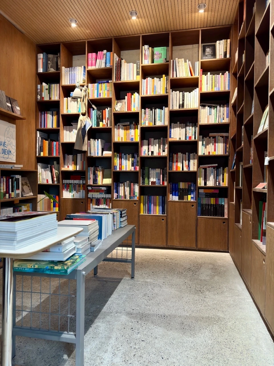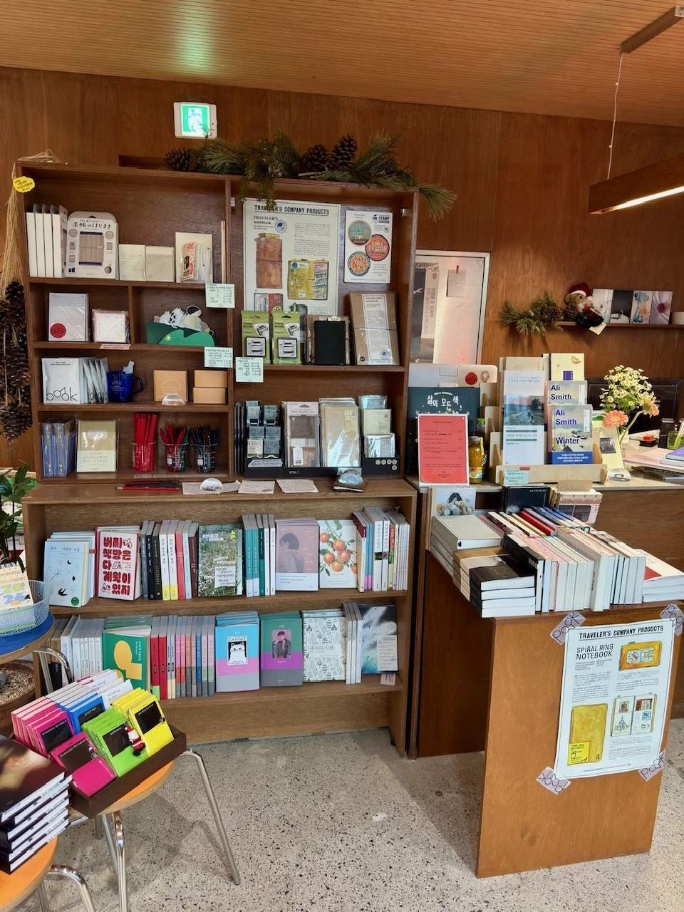 카운터 뒤에 있던 익숙한 버찌 책방지기의 눈이 동그래지면서 이전에 방문하신 적이 있지 않느냐고 내게 질문했다. 사실 나는 한두 번 만나서는 기억하기 쉽지 않은 익명성에 최적화된 캐릭터라 자부하고 있어서, 당연히 알아보지 못하리라 생각하고 책방을 둘러본 후 책을 구매할 때, 넌지시 반달서림 북토크 때 만난 적이 있노라고 말하며 깜짝 커밍아웃을 하려고 했는데, 예리한 버찌책방지기 눈썰미에 기분 좋은 일패를 당했다. 다시 책방지기에게 버찌책방은 처음이고 그날 북토크 이후 올해가 가기 전에 방문해보고 싶었다고 인사하고 호두과자를 건넨 후 책방을 둘러보았다.