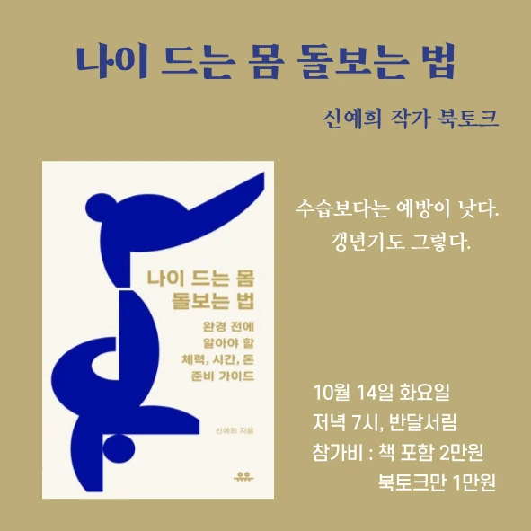 3. 반달서림 《 나이 드는 몸 돌보는 법》 신예희 북토크를 마치고 (https://blog.naver.com/bandalseorim/224042872565?trackingCode=blog_bloghome_searchlist)