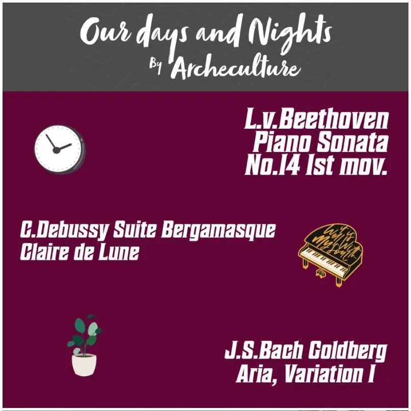 조준호 뮤지션의 첫 번째 반달음악회로부터 3개월 후, 두 번째 반달음악회 안내글이 올라왔다. 분기별로 적어도 한 번의 음악회를 개최한다는 반달서림 대표님의 굳은 의지 확인, 두 번째 음악회는 아르케컬처가 공연하는 「우리들의 낮과 밤」으로. 반달서림 대표님은 이 생소한 이름의 공연 취지를 다음과 같이 밝혔다.