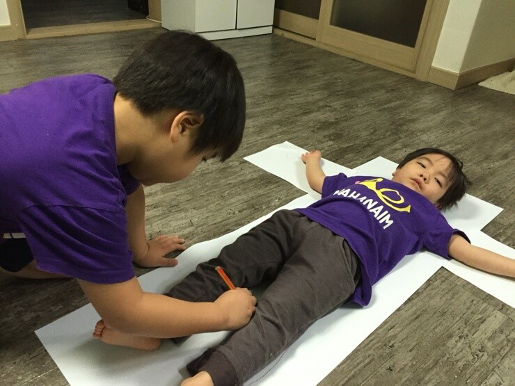 내친김에 동생까지 눕혀서 몸지도를 그려줍니다..;