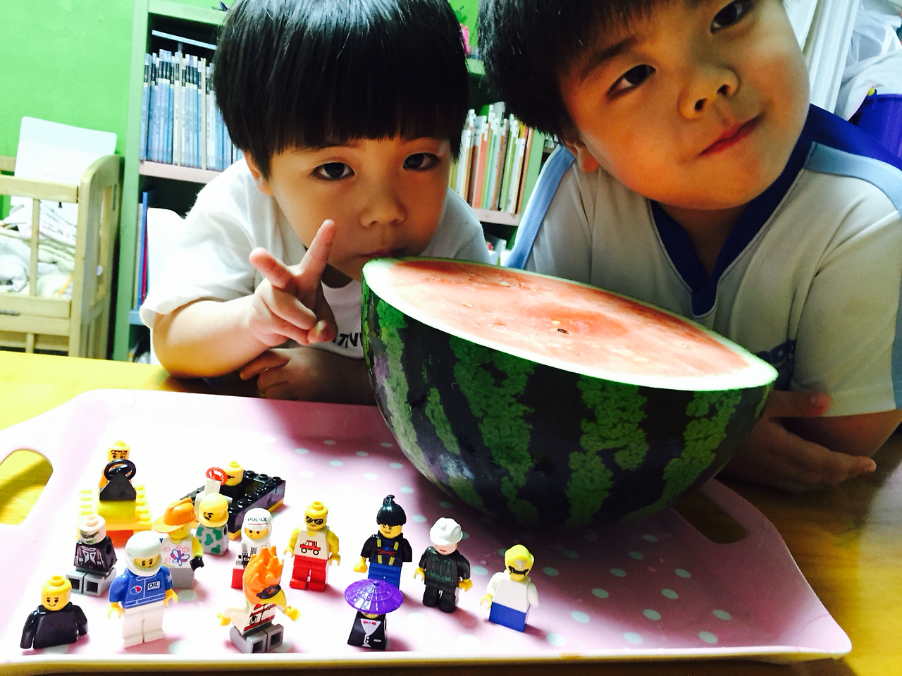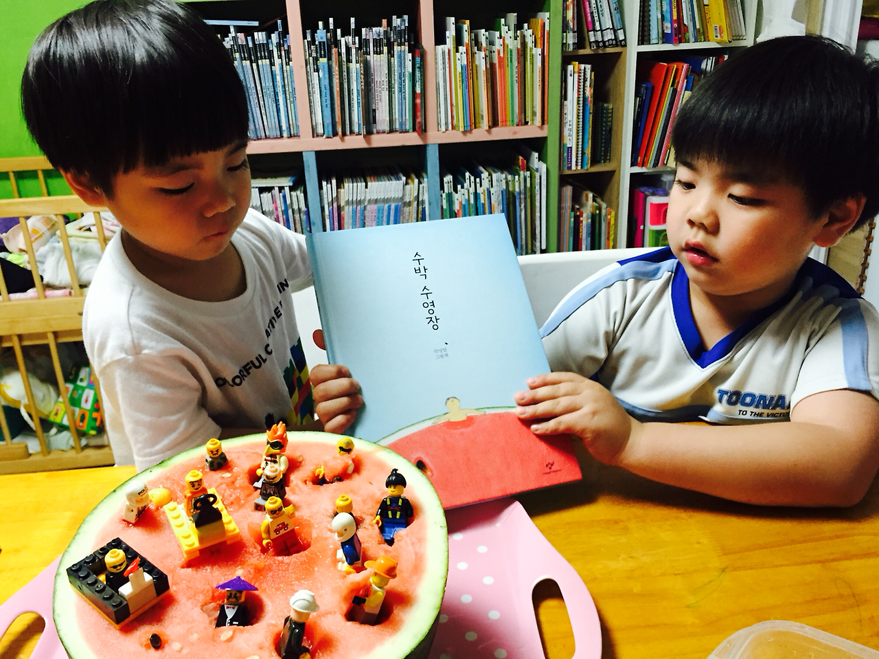 지온이가 좋아하는 수박 수영장.