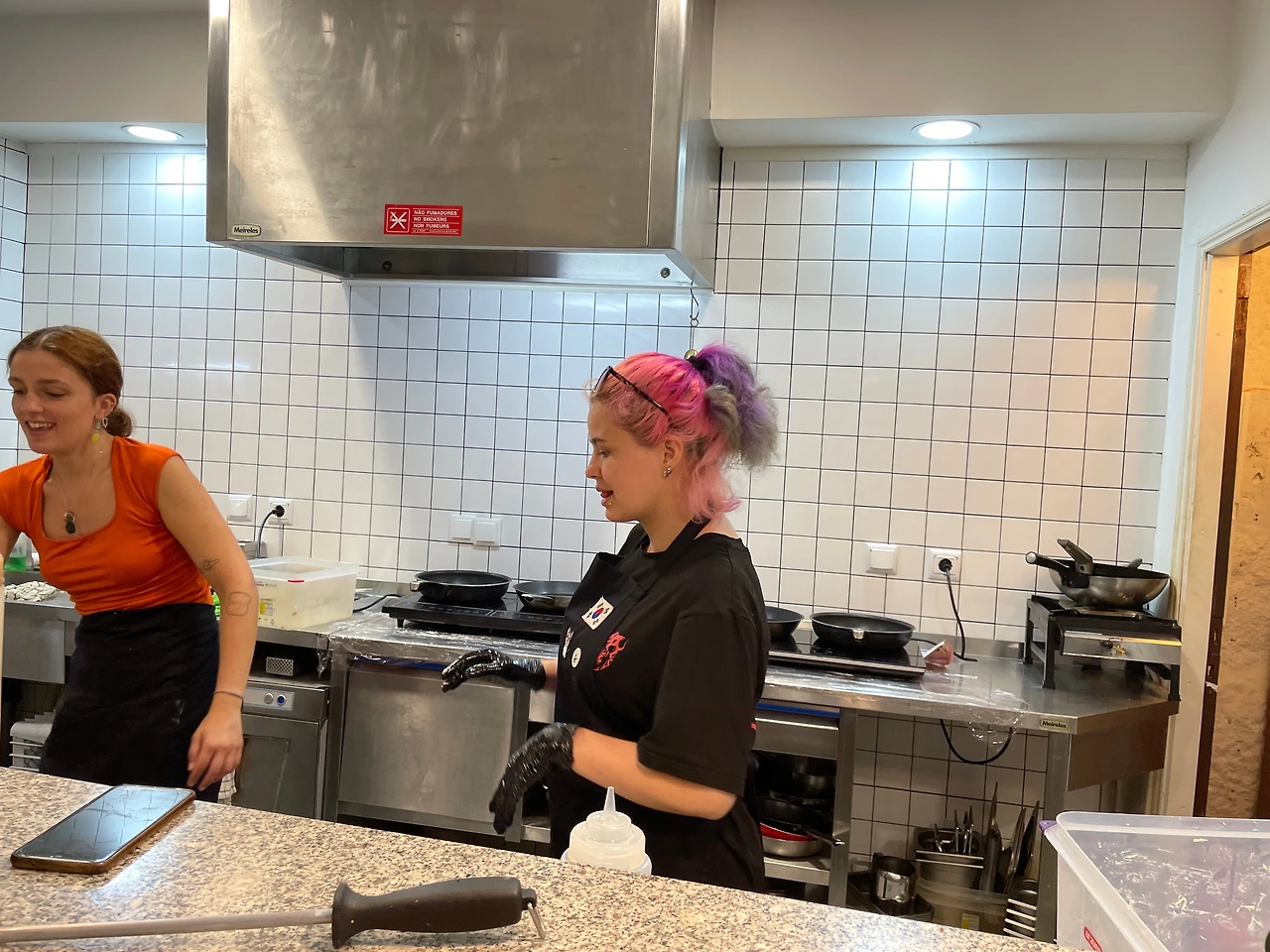 아나: 저는 아나(Ana)입니다. 포르투갈 현지인이고, 일한 지 3년 정도 되었어요. 여기서 메인 요리사 역할을 담당하고 있어요. 워낙 손으로 만드는 걸 좋아해서 레시피를 다양하게 시도하고, 다른 한국음식보다 더 맛있게 만드는 방법을 연구해요. 음식 맛을 비교하려고 포르투의 한국 식당은 거의 다 가볼 정도로 일이 좋아요.