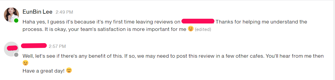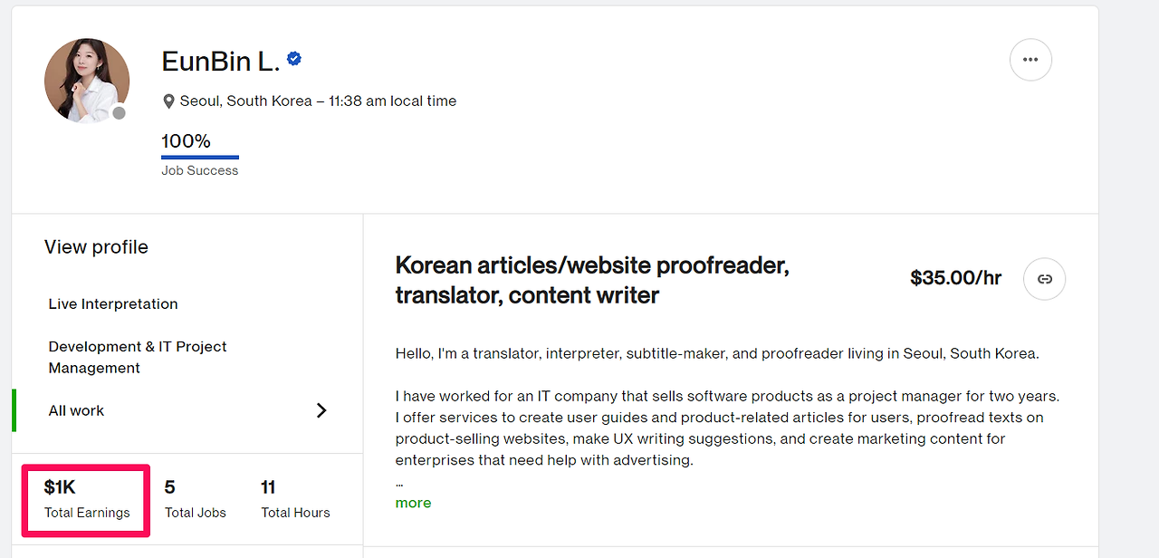 초기에는 수시로 해외 고객에게 온 이메일이나 문자가 없는지 확인했다. 어느 날 프로젝트를 마치고 제출했더니 새벽에 고객이 번역이 이해가 가지 않는다는 답장이 왔다. 시작한 지 얼마 안 되어 나쁜 후기를 남길까 봐 조마조마했던 나는 벌떡 일어나 노트북을 켜고 문제를 해결해야 했다.