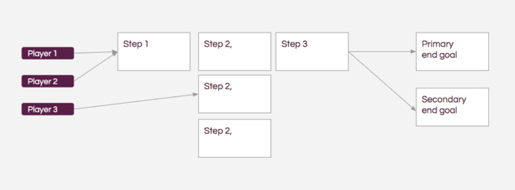 여러분이 해결하고자 하는 문제는 보통 다양한 유형의 사람들(혹은 플레이어들)로 구성되어 있으며, 각각은 프로젝트의 플로우에서 지분을 가지고 있습니다. 배운 내용에 기반하여 가능한 플레이어의 리스트를 작성해야 합니다. 가령 “내반족을 진료하는 의사”, “내반족 환자”, “환자를 돌보는 간병인” 등과 같이 유저 유형이나 이해관계자가 될 수도 있습니다. 종이나 화이트보드 왼쪽 면에 각각의 플레이어를 적고 오른쪽에는 각 플레이어의 목표를 적습니다.