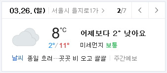 그런데 이전 네이버는 투데이 코너가 작은 화면 영역임에도 불구하고 주제 또한 다양하고, 텍스트도 많아 가독성이 매우 떨어집니다. 정보 제공 시 사용자에게 전달해야 할 정보를 어떻게 핵심 위주로 전달할 것인지가 중요한데, 그렇지 못한 것이 아쉬웠습니다.
