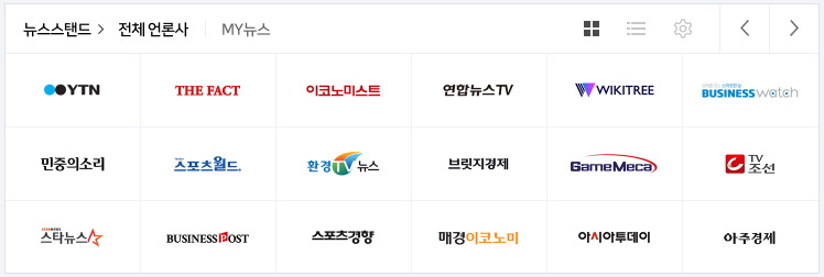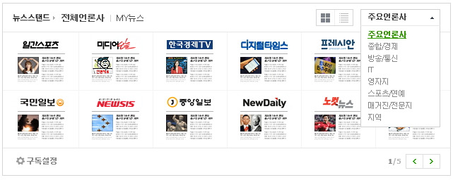 반면 개편된 네이버는 드롭다운 선택으로 언론사를 선택하는 것이 아니라 언론사 목록을 펼침 상태로 줘 한 눈에 알아보기 편하고, 상단 좌우 버튼을 눌러 찾고자 하는 언론사 전체 내역을 빠르게 조회가 가능합니다