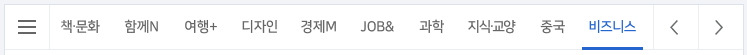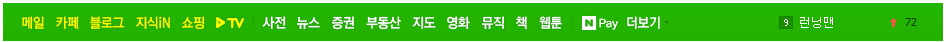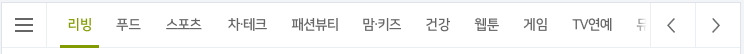 상단 메뉴 영역은 이전과 동일한 메뉴 구성으로 별다른 차이점이 없어 보입니다. 다만, 메뉴 영역을 깔끔한 형태로 제공하기 위해 녹색 배경색을 제거한 것이 큰 특징입니다.