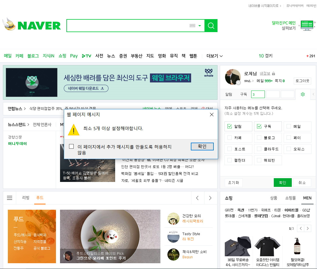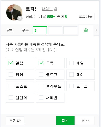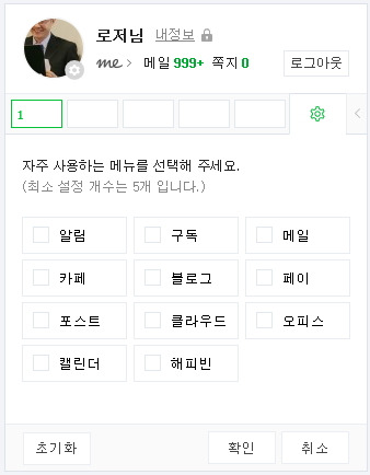 개편된 네이버는 메일, 블로그, 카페 등 사용자가 자주사용하는 메뉴를 직접 설정하여 로그인 외 개인화 영역의 활용도를 높이고자 노력하고 있음을 엿보입니다.