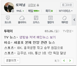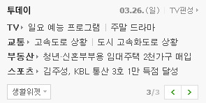 이전 네이버는 한줄뉴스 영역에 회색 바탕의 배경색이 어두운 측면이 있었는데, 개편된 네이버는 이를 과감히 제거하였습니다. 또한 화면 우측에 네이버뉴스, 연애 등 뉴스 카테고리의 경계선을 없애고 화면 영역을 간결하고 깔끔한 형태로 보여주고 있습니다.