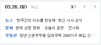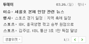 반면, 개편된 네이버는 주제별 구분이 명확하고 핵심 위주로 정보를 추려 깔끔하게 정보를 전달하고 있습니다.