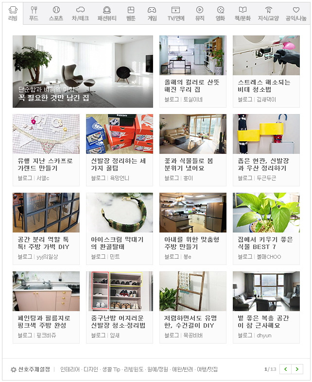 반면 개편된 네이버는 관심 주제의 순서를 사용자가 원하는대로 변경할 수 있고, 불 필요한 주제는 삭제가 가능하여 사용자 편의의 서비스를 제공하고 있습니다.