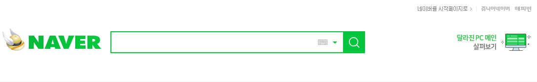 로고 색상은 채도를 낮게 하고 검색창 테두리는 더 얇아졌습니다. 검색창 크기는 이전에 비해 더 커지고 버튼명은 텍스트에서 돋보기 아이콘으로 바꾸었습니다. 특히. 이전에 검색창 하단영역에 있는 추천키워드가 떴었는데 이를 과감하게 삭제한것은 네이버의 대단한 결정이었습니다. 그 만큼 이번 개편 목적은 디자인의 간결성을 높이겠다는 의지를 들어낸것이죠.