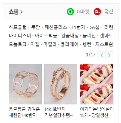 최근 다음 포털 사이트의 쇼핑 영역은 G마켓, 옥션만 있습니다.