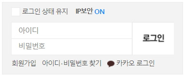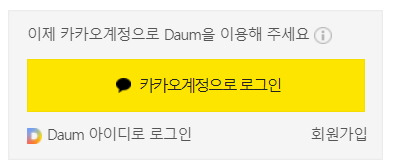 이후 개편된 다음 포털 사이트의 로그인 영역을 보면 '회원가입'과 '아이디 비밀번호 찾기' 영역을 보면 구분 선이 없어 깔끔합니다.