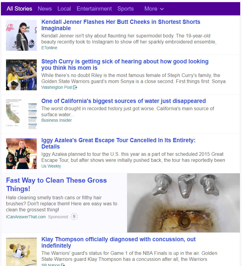 예를 들어 YAHOO.COM 사례를 살펴보겠습니다. 이전 (미니멀리즘 이전) 야후의 메인 페이지를 살펴보면 상위에 있는 뉴스와 바로 아래 있는 뉴스 사이에 실선의 경계선으로 상위 컨텐츠와 하위 컨텐츠 여부를 시각적으로 구분해 줬습니다.