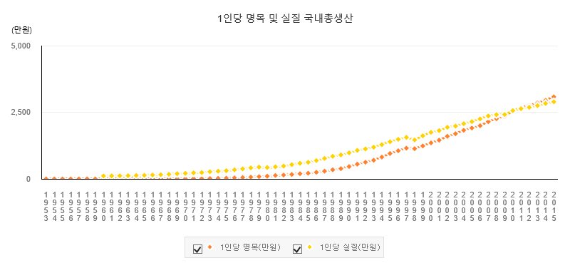 고도 성장기의 전반적인 사회 문화는 소수가 주도하고, 다수는 그에 편승하는 구조가 일반적이었다. 이런 사회 분위기나 사회 구조는 나라를 빼앗긴 서러움과 말할수 없는 두려움,고통이 국민정서에 뿌리를 내린 점이 있을 수 있고, 동족상잔의 비극적인 6•25전쟁으로 군사 독재가 가능했던 것도, 그 이후 개발독재가 가능했던 것도 그런 사회분위기, 그럴 수 밖에 없는 사회 구조적 한계, 그에 따라 누군가에 의지하고 따라갈 수 있는 정서적 태도가 우리나라 문화에 깊숙히 자리잡았다. 그런 아무것도 없는, 무엇이 맞고 틀린지 누구도 잘 모르는 사회이기에 정부주도의 성장, 특정 기업, 특정 지식층 주도의 양적 성장이 가능했다. 물론 우리 나라 사람 특유의 높은 교육열, 근면성, 성실함도 큰 부분을 차지했다. 그렇게 우리나라는 고도 성장을, 한강의 기적을 이루어냈다. 국민 1인당 생산액도 급격하게 증가하여 2015년 1인당 국내총생산액도 3000만원을 돌파했다. 지난 과거와는 비교할 수 없을 정도로 정말 잘 사는 나라가 되었다.