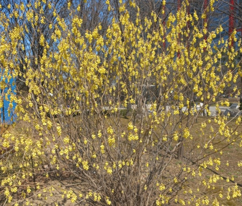 처음에는 나도 개나리라고 생각했는데 좀 이상했다. 사진을 풀로 확대해서 보니 개나리가 아닌 것 같다.