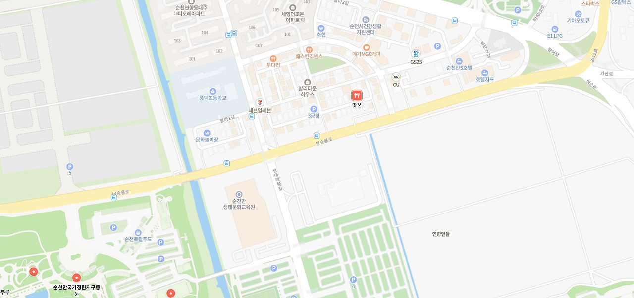 순천국가정원만 관람하는 목적이라면 순천국가정원 동문에서 1킬로 미터 이내에 호텔(비즈니스 모텔)과 먹거리촌이 형성되어 있어 이를 활용할 수 있습니다. 저는 그냥 혼자 관람을 와서 편안하게 이용했습니다.